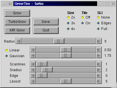 • Sradius: lookup radius for first search pass. (only affects turbogrow)